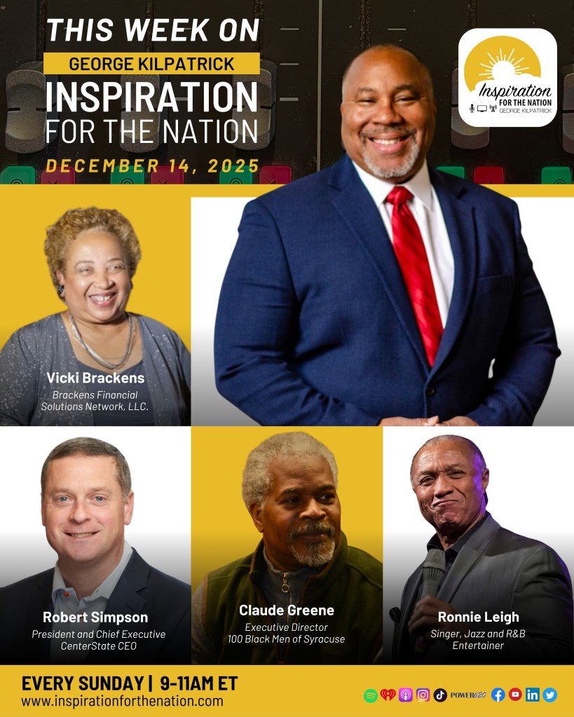 On this segment of Inspiration for the Nation, George Kilpatrick and America’s Money Maven Vicki Brackens sits down with Robert Simpson, President and Chief Executive of CenterState CEO, for a candid conversation about leadership at its limits. They discuss why Central New York’s future depends on collaboration, access, and ensuring prosperity isn’t limited to a few.