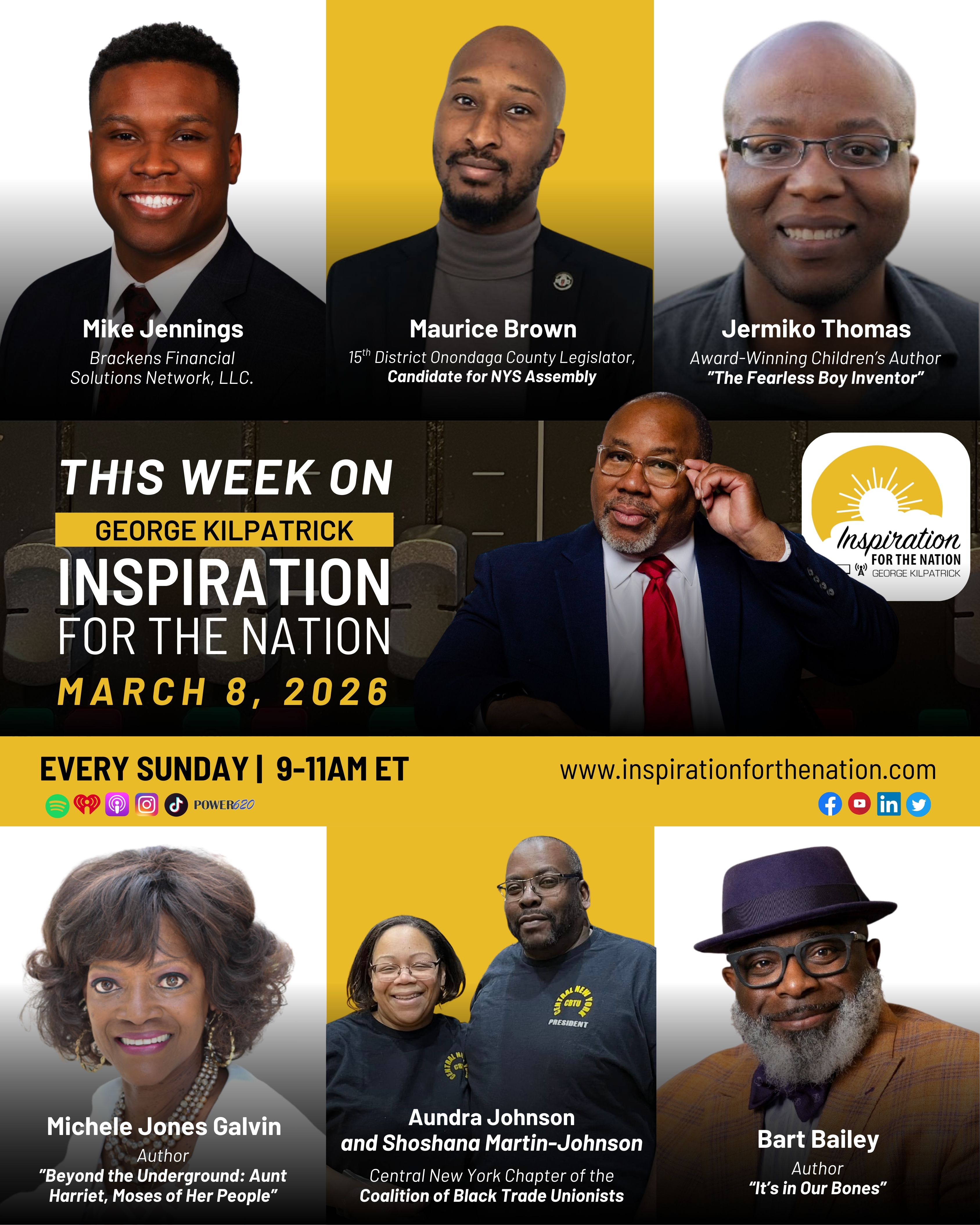 This week on George Kilpatrick Inspiration for the Nation, Mike Jennings breaks down the latest on U.S. and global relations and their impact on us all. Onondaga County Legislator Maurice Brown* shares his vision for New York State Assembly District 129, discussing policies around equitable taxation, public transportation, public safety, and youth access to sports programs.