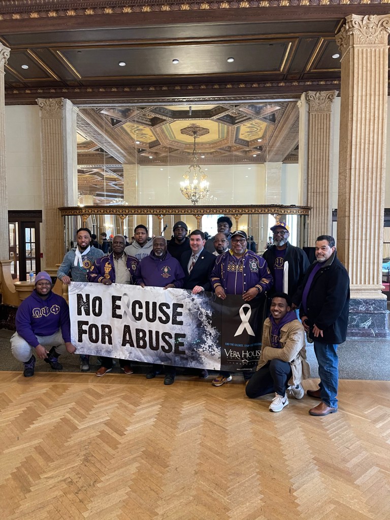 Today hundreds of people of all gender identities marched through downtown Syracuse in support of ending gender based violence. I am proud to have represented the Vera House, Inc. team but also my brothers the Omega Psi Phi Fraternity Inc. Chi Pi Chapter. We are grateful for a community that made a commitment in words that there is no excuse for abuse. Now we just have to do it. I am also proud of the young men from PSLA at Fowler and Nottingham who made commitments to be accountable to one another on the journey redefining masculinity. As we marched through downtown chanting no excuse for abuse, there was an energy that a least for today validated the feelings of survivors. Special thanks to Major League and the Major League Baseball Players Association for their funding support of the youth activity. Thank you honorary co-chairs Andrew Donovan and Frankie Jupiter.